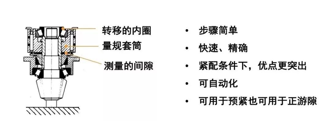 在一定的安裝力作用下,測量墊片或隔圈間隙來獲得正確的游隙。