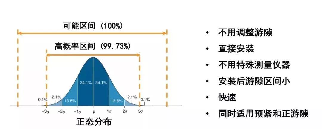 Set-Right使用概率方法并控制相關(guān)零件的尺寸公差來確保所有的裝配總成中有99.73%的軸承游隙落在可接受的范圍內(nèi)。